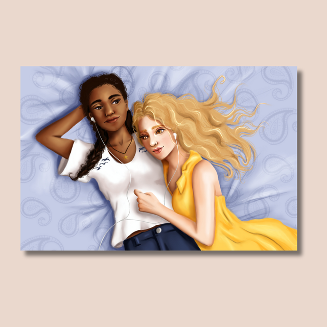 Illustration imprimée de Flynn et Aelia de Lub Dub Love par Amandine Peter.